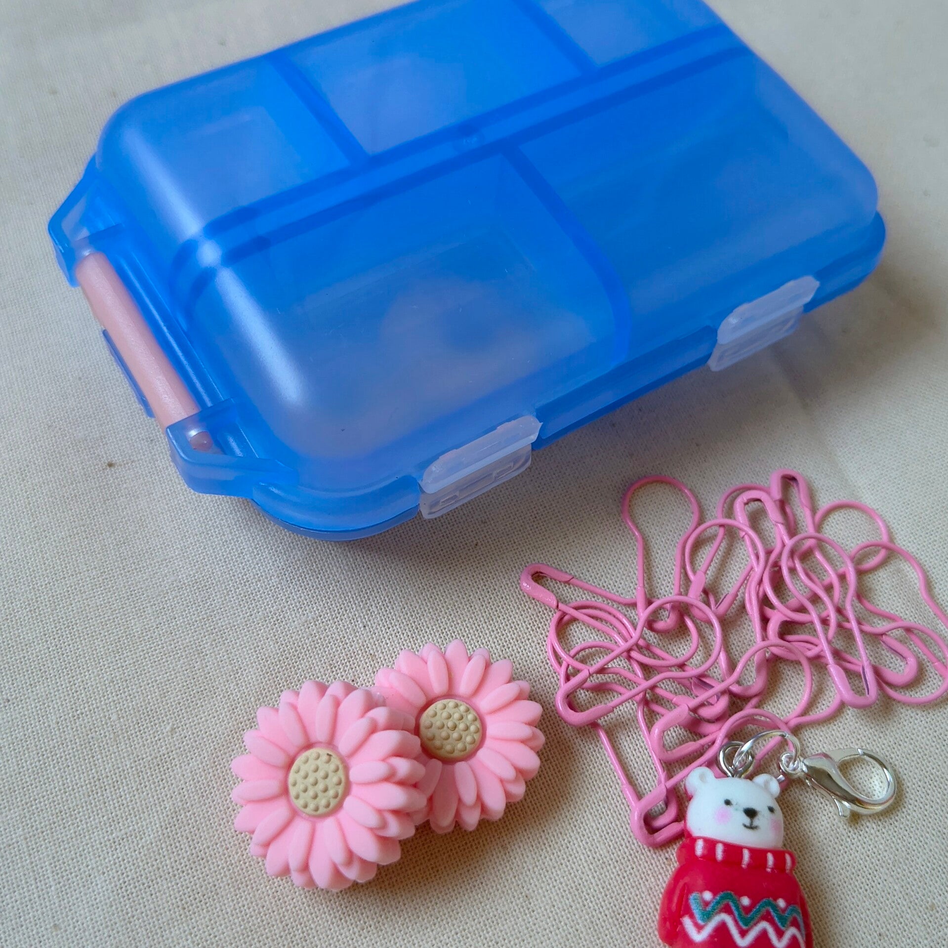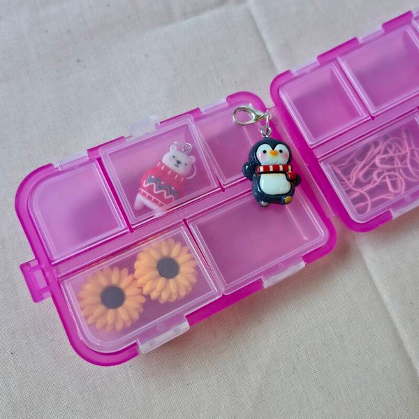 Een super handig opbergdoosje met vakjes. Perfect voor stekenmarkeers, progresskeepers, kleine naaldstoppers en andere kleine spulletjes.